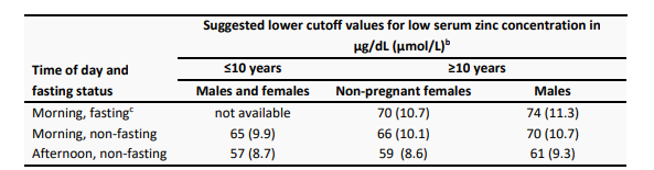 Serum zinc concentrations are influenced by multiple factors, including recent meals, time of day, age, sex, hormonal contraceptive use, inflammation, and systemic infections. Because inflammation can depress serum zinc levels, the International Zinc Nutrition Consultative Group (IZiNCG) recommends measuring inflammatory markers together with zinc and applying statistical adjustments when significant negative correlations are observed.