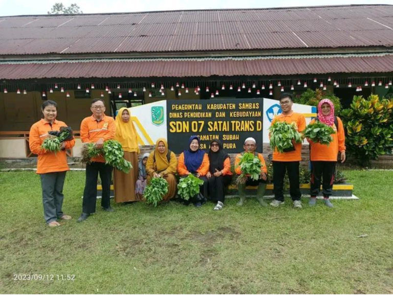 Nutrition Goes To School Subah Community (NGTS Subah) of Sambas District, West Kalimantan, held its second community meeting on September 12, 2023. This meeting was held at Satai Trans D Elementary School 07, with the theme “Sharing Experiences in School Garden Development”. This activity was attended by representatives of teachers and principals of NGTS Subah community members, namely Talenta Sungai Kajang Elementary School, Sabung Setanggak Elementary School 08, Trans Sabung Elementary School 14, Satai Trans D Elementary School 07, Sungai Enau-Mejo Elementary School 19, and Satai B Elementary School 11. In addition, the member of the parents’ forum for each class, the school committee, and all students of Satai Trans D Elementary School 07 also participated in this activity.