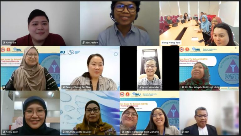 [fusion_builder_container type=”flex” hundred_percent=”no” equal_height_columns=”no” hide_on_mobile=”small-visibility,medium-visibility,large-visibility” background_position=”center center” background_repeat=”no-repeat” fade=”no” background_parallax=”none” parallax_speed=”0.3″ video_aspect_ratio=”16:9″ video_loop=”yes” video_mute=”yes” border_style=”solid”][fusion_builder_row][fusion_builder_column type=”1_1″ type=”1_1″ background_position=”left top” border_style=”solid” border_position=”all” spacing=”yes” background_repeat=”no-repeat” margin_top=”0px” margin_bottom=”0px” animation_speed=”0.3″ animation_direction=”left” hide_on_mobile=”small-visibility,medium-visibility,large-visibility” center_content=”no” last=”no” hover_type=”none” min_height=”” link=””][fusion_text]SEAMEO RECFON and the International Medical University (IMU) Centre for Transformative Nutrition and Health are currently conducting an hybrid Training on Nutrition Goes to School (NGTS) for 10 school teachers, facilities manager, and canteen operator from REAL International School for the piloting of the NGTS Program in Malaysia. Started on 17 November 2023, the training will run until 14 December 2023 consisting of seven session meetings.