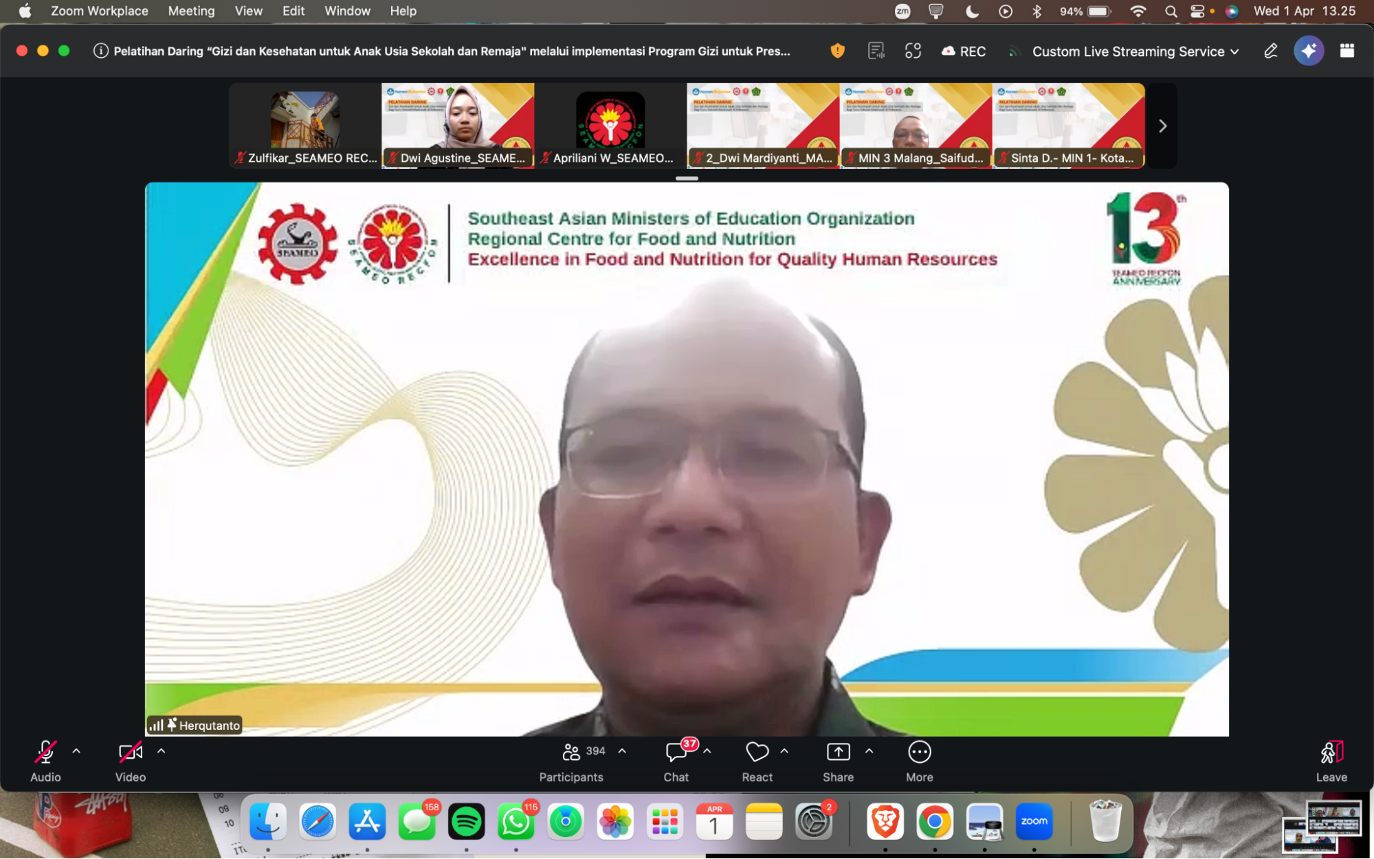 SEAMEO RECFON, in collaboration with the Ministry of Primary and Secondary Education and the Ministry of Religious Affairs of the Republic of Indonesia, conducted the Online Training on Nutrition and Health for School-age Children and Adolescents 2026. On April 1, 2026, the program officially commenced with the opening ceremony and the first synchronous virtual learning session, attended by participants from various regions across Indonesia via Zoom and the Learning Management System (LMS). This training is part of efforts to expand access to capacity building for educators in supporting the implementation of balanced nutrition and healthy lifestyle behaviors within educational institutions.