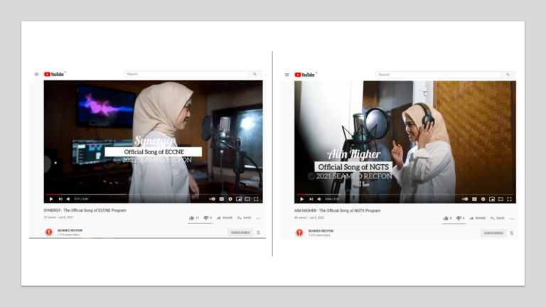 The jingles were the winning entries in the jingle writing contest launched by RECFON from December 2020  to 28 January 2021 as part of its year-long 10th anniversary celebration during the current year.  The winning composers of the jingles were  Jocken Anastrio (music) and Alvien Praditavio Meitama (lyrics)  with the title “Aim Higher” for NGTS Program, and Andre Natalis Putranto (music) and Wieka Yuswidiana (lyrics) with the title “Synergy” for ECCNE Program.  RECFON’s Deputy Director for Program, Dr. Jess Fernandez, improved the wordings and came up with additional stanzas  for the jingles to properly capture the essence of the flagship programs.