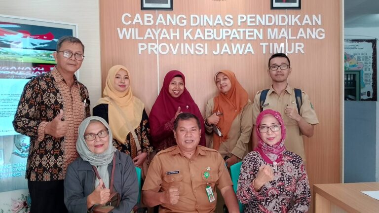 The joint visit included advocacy meetings with the Malang Regency Education Office as well as monitoring and evaluation visits to partner schools, namely SMKN 1 Singosari and SMAS Diponegoro Tumpang. The agenda covered monitoring program progress in schools, documenting best practices, identifying challenges and support needs, and giving recognition for school achievements.