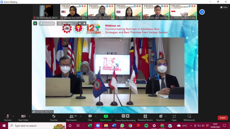 SEAMEO RECFON’s Governing Board held its 12th annual meeting virtually on 19-21 September 2022 to review the Centre’s achievements during fiscal year 2021/2022 and approve new initiatives for the next fiscal year 2022/2023. Six of eleven Governing Board (GB) Members from Brunei Darussalam, Cambodia, Indonesia, Myanmar, Thailand, and Singapore attended the annual meeting, as well as the representatives from Lao PDR, Malaysia, and Vietnam as observers.