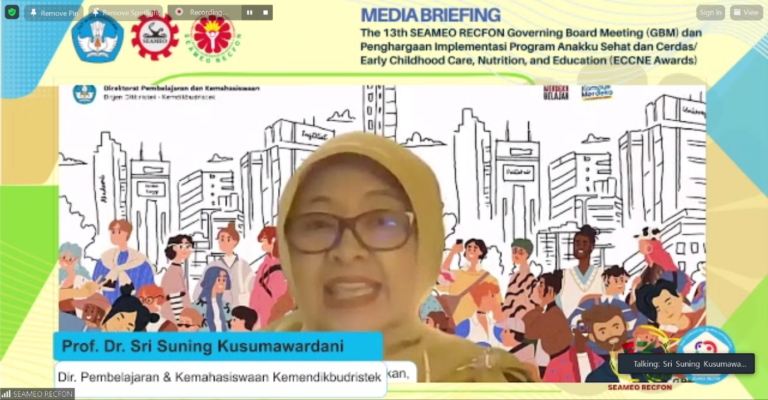 SEAMEO RECFON held an online media briefing with national mass media on September 18, 2023, in order to disseminate information related to the 13th SEAMEO RECFON Governing Board Meeting (GBM) and Early Childhood Care, Nutrition, and Education (ECCNE Awards) this year