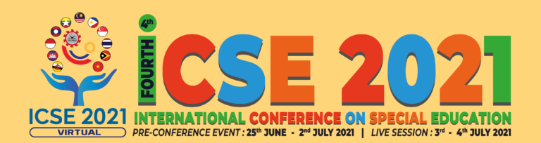 The 4th ICSE 2021 will be hosted virtually. ICSE 2021 main objective is to establish an opportunity to all educators, organizations and stake holders to develop and enhance their capacities to provide accommodative learning environment. The conference will serve as a platform for exchange of best practices, networking and specialization which consist of the wide spectrum of skills and knowledge that are needed to educate and care for learners with special needs.